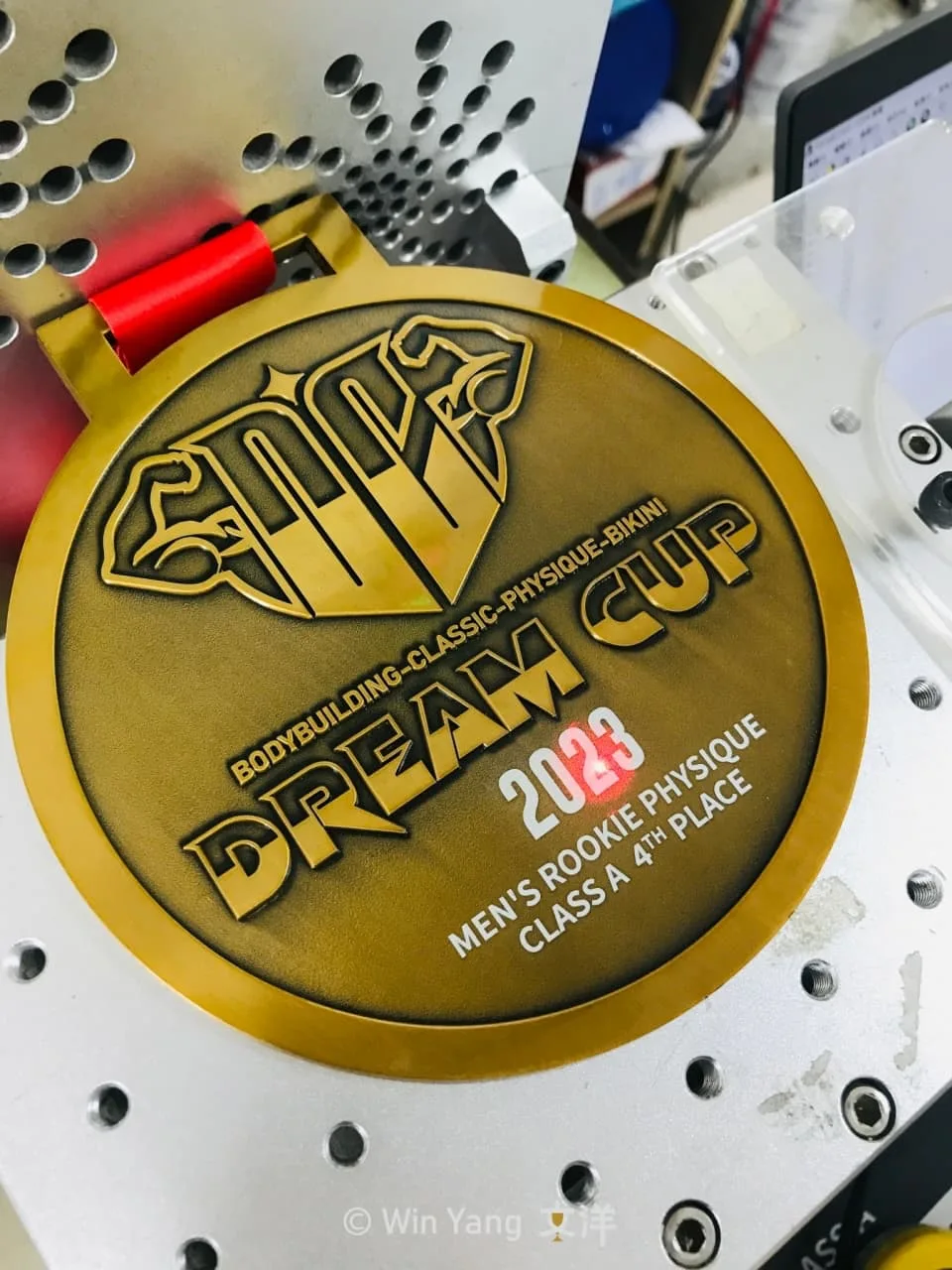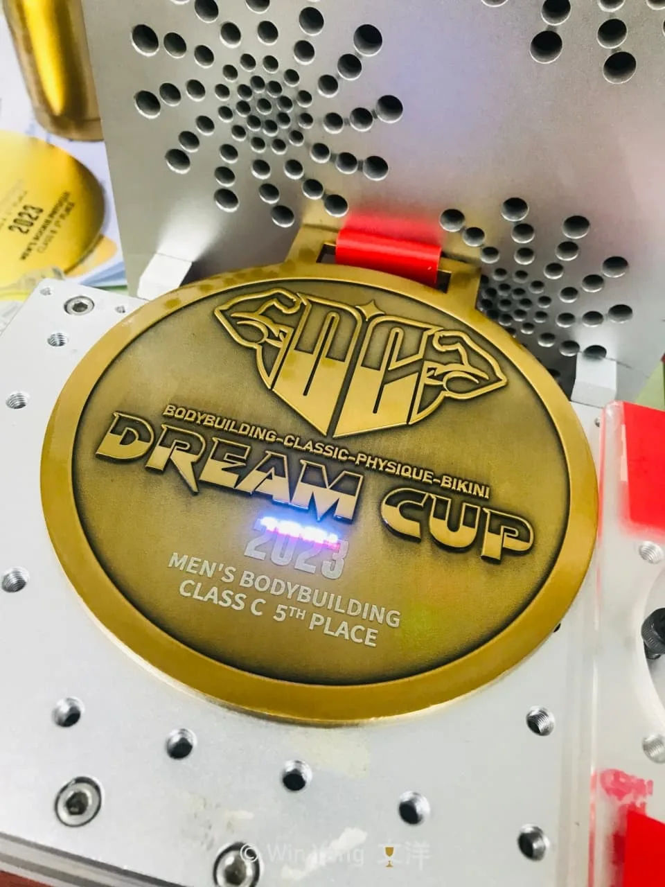 今年台灣2023夢想盃健美比賽匯集許多藝人朋友、健美人士,共同見證了一場充滿汗水、挑戰、與藝術性的運動盛會。每位健美選手堅持與挑戰精神,藉由平日的重量訓練、飲食控制,讓身體線條更完美,無非是一場長期堅毅的意志力挑戰與展現。2023夢想盃為台灣的健身界帶來了新的活力,也希望鼓勵更多人參與健康的健美運動。文洋很榮幸的能夠參與此次設計盛會高質感的雷雕獎牌,藉此為更多優秀的健美選手們激勵加油。