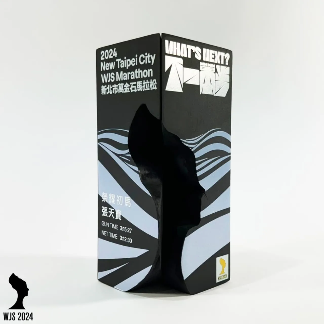 這次2024萬金石馬拉松的初馬客製化獎盃有金色與黑色,使用兩組木塊拼組,擺放時可以依照喜好任意配置,但不論怎麼擺放,女王頭典雅的美麗造型都完整的呈現在客製化獎盃之中。