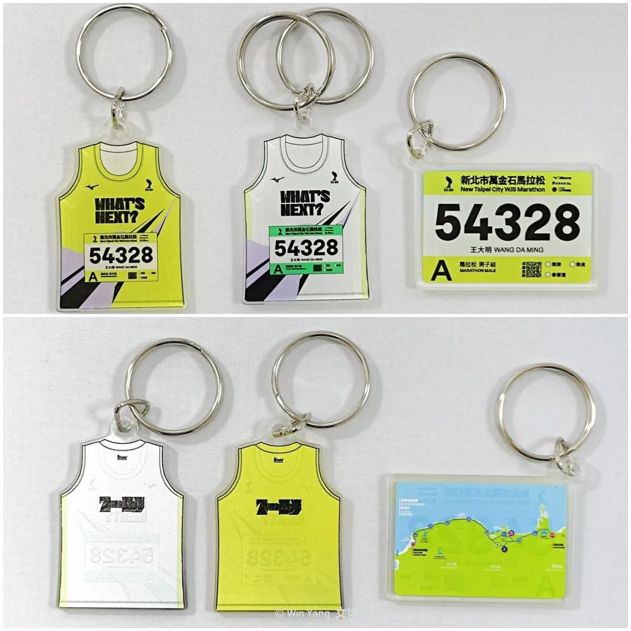 2024萬金石馬拉松紀念品除了縮小版的跑者參賽獎座,還有縮小版的號碼布及跑衣,變成精緻的鑰匙圈,就像是完成挑戰的戰利品一般,隨身攜帶!