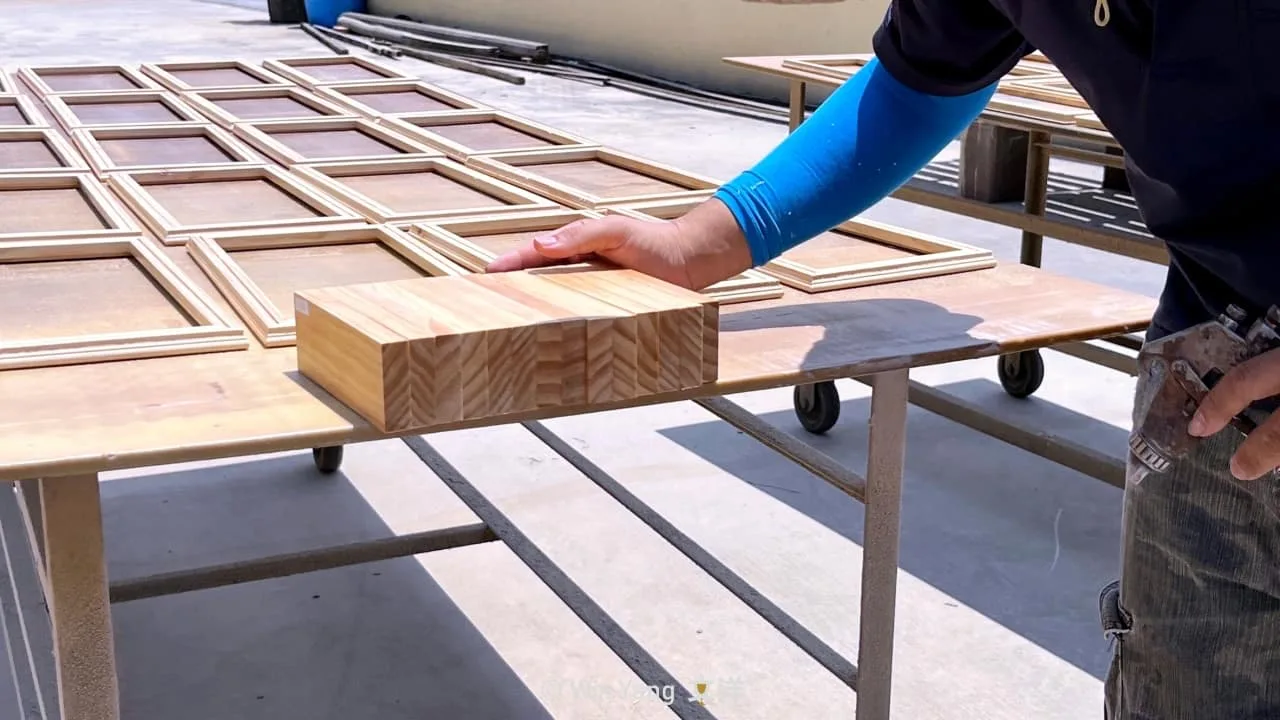 而回收的木材,則是取用剩餘丟棄的廢料、邊角材料,透過黏合拼接技術與拋光切割技術,製造出需要的木裁尺寸,表面再使用大豆原料的墨水,結合UV數位印刷技術,重新賦予毫不起眼的廢木材生命力。