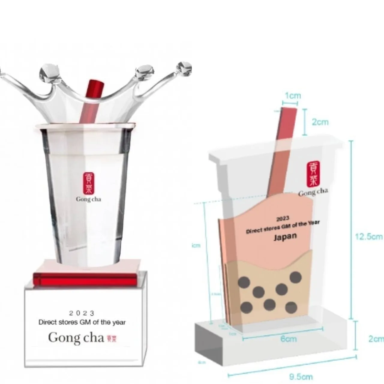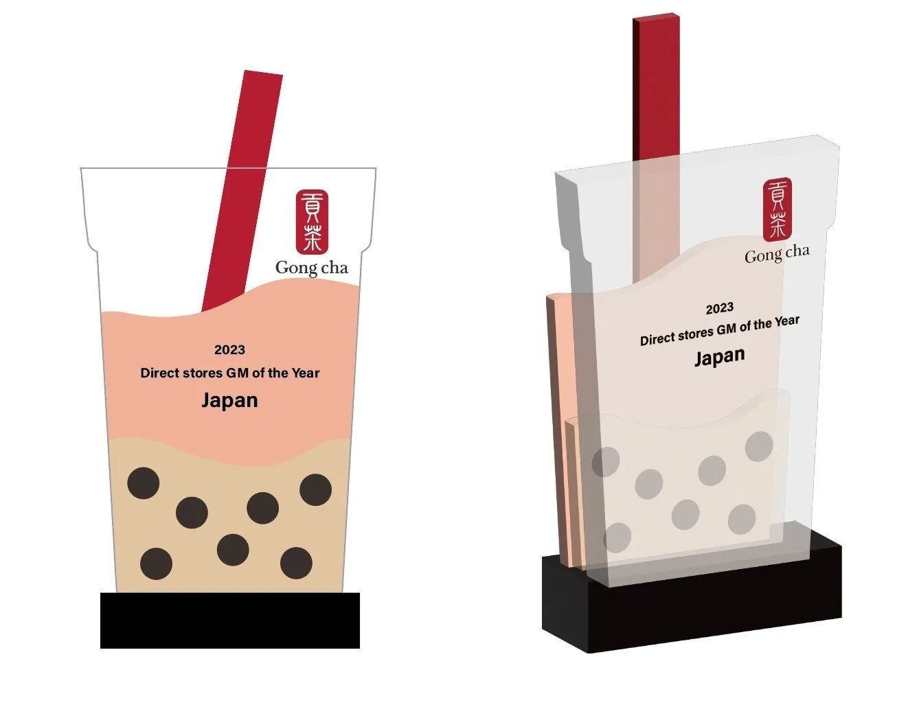 這次文洋團隊很榮幸承接貢茶全球代理商大會的獎盃,外型設計以征服全球味蕾的珍珠奶茶出發!