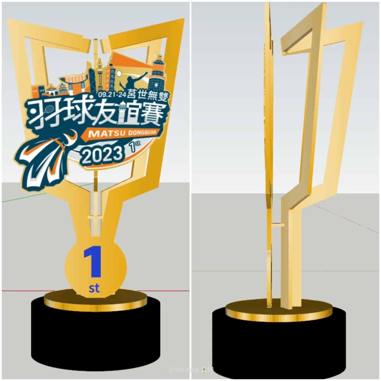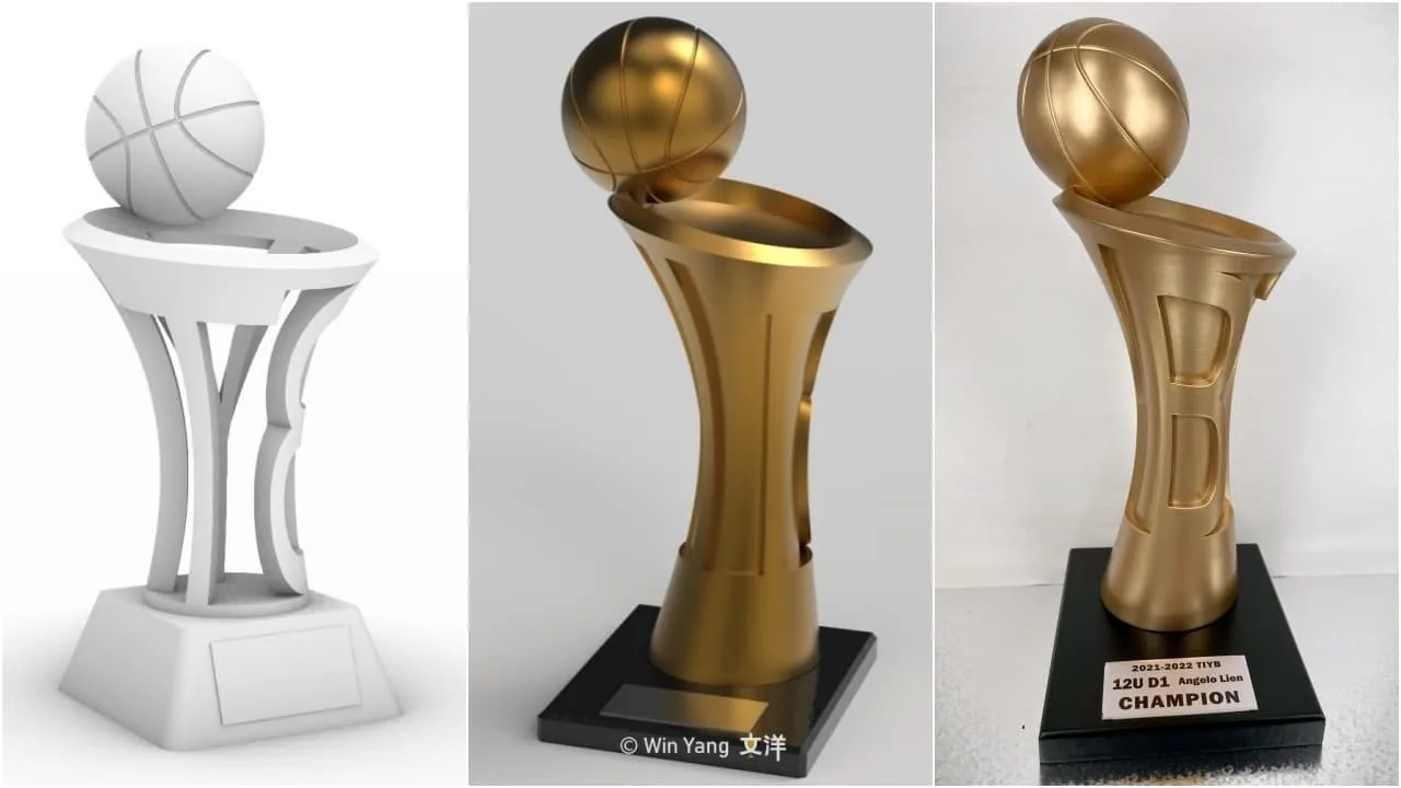 3D列印獎盃設計,複雜的電鑽造型也能如實呈現。